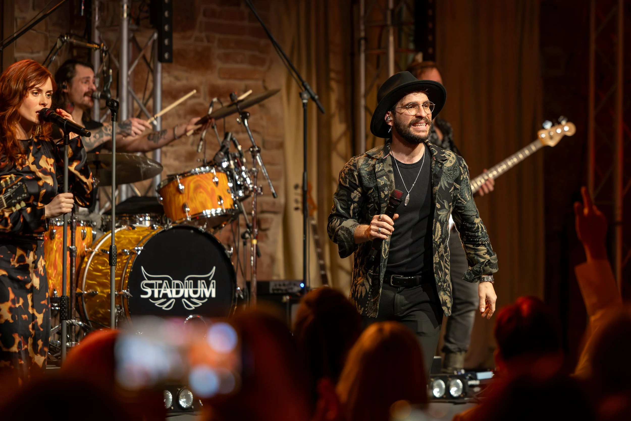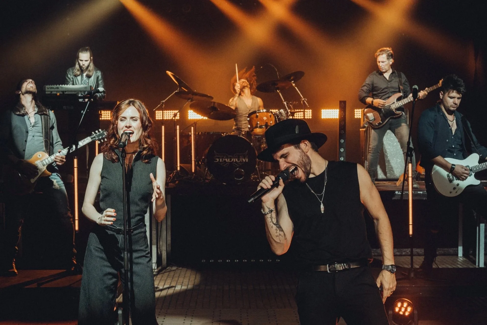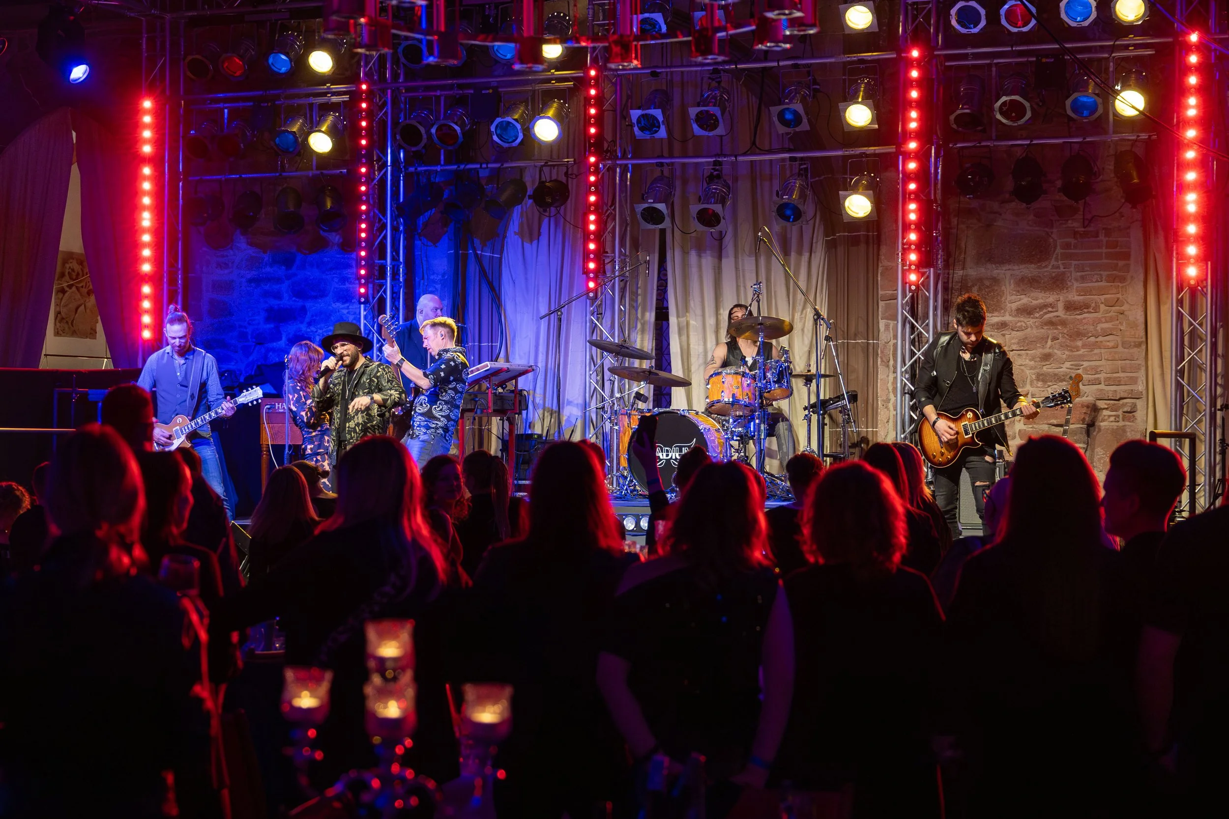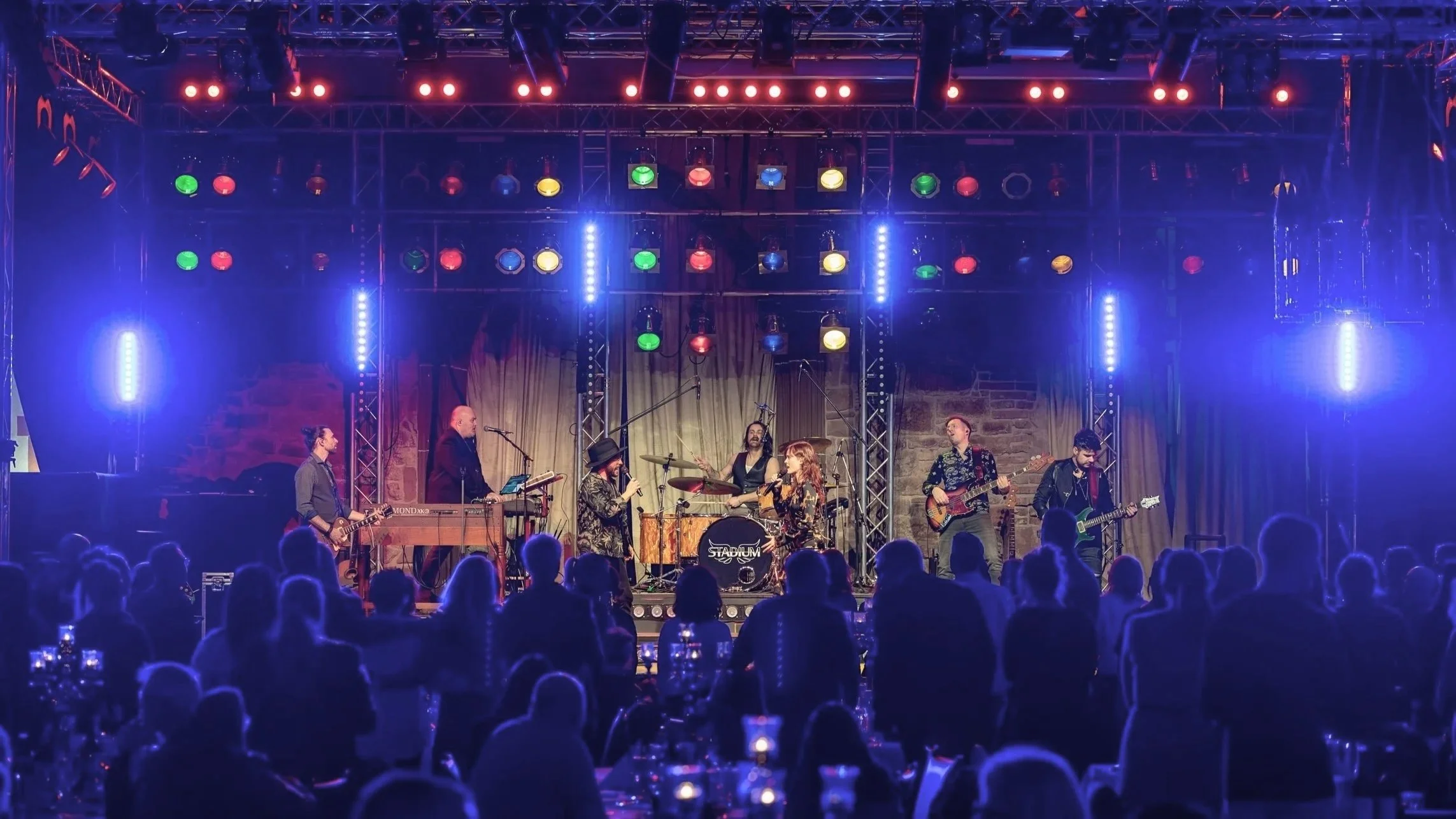 7 musicians. In-house FOH and in-ear monitoring.